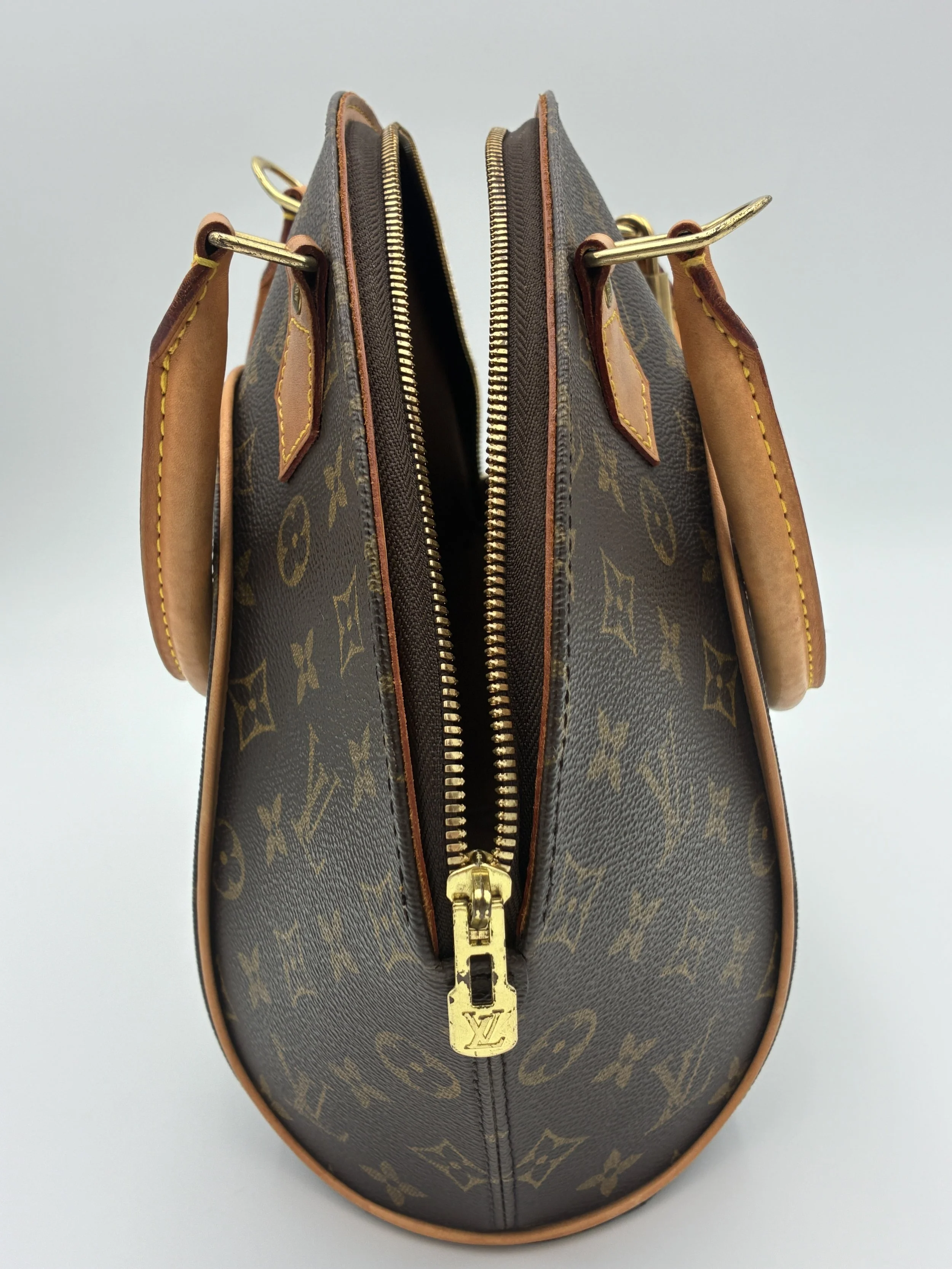 The Louis Vuitton Monogram Ellipse PM is a sophisticated and compact handbag that captures the essence of timeless luxury. Crafted from iconic LV monogram canvas, it features a rounded silhouette with smooth leather trims and a polished gold-tone chain strap that can be worn shoulder or crossbody. Its minimalist design and practical size make it ideal for everyday use or elegant evenings, embodying both classic style and modern functionality. A true statement piece for those who appreciate enduring craftsmanship and refined fashion.